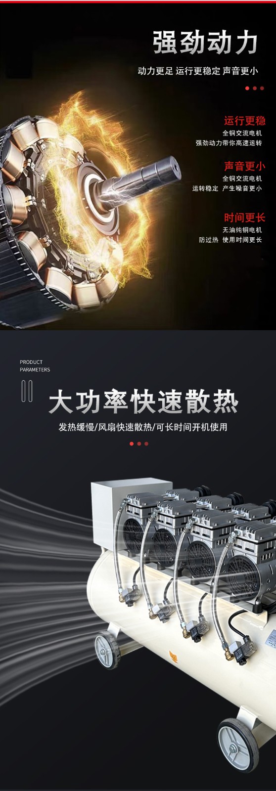 - 無(wú)油空壓機(jī)因缺乏油的冷卻作用,運(yùn)行溫度相對(duì)較高,部分機(jī)型需配備更強(qiáng)的冷卻系統(tǒng);同等功率下排氣量略低于機(jī)油潤(rùn)滑機(jī)型。